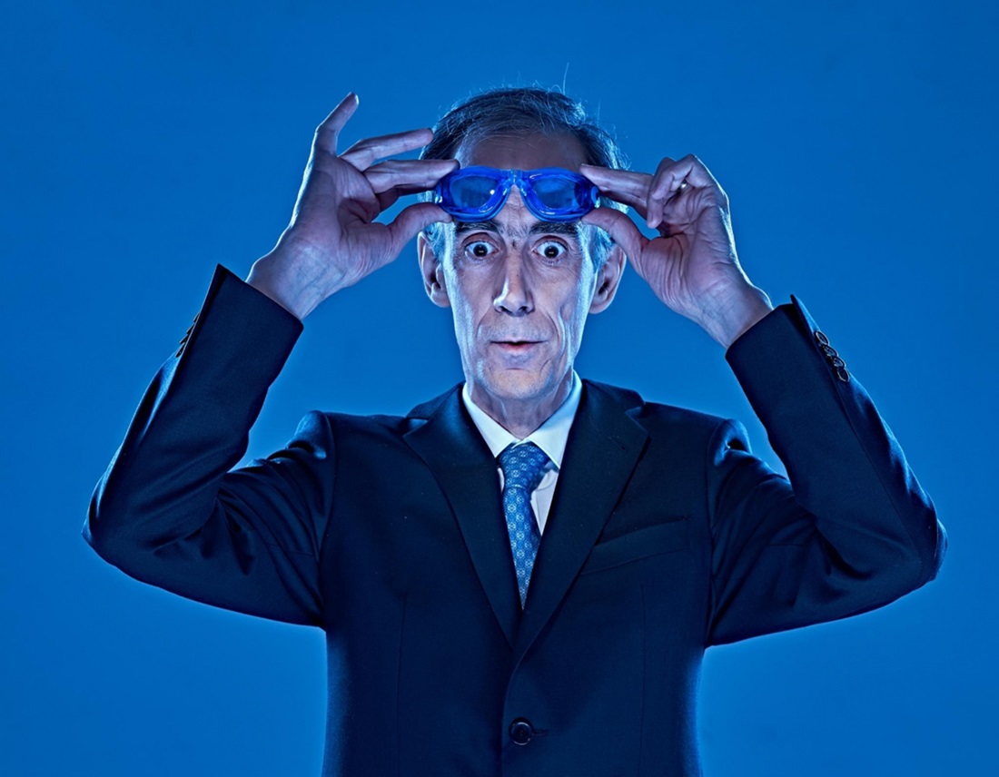 Va ser fa dos anys, durant unes vacances familiars, quan Mayorga es va trobar un matí amb les seues ulleres trencades. Després d’uns instants inicials de desconcert, va recordar que tenia unes ulleres de natació graduades, de color blau, regal dels seus fills en un dels seus últims aniversaris. «Prove de posar-se unes ulleres graduades de natació i isca al món. Ningú es conformarà amb l’explicació més senzilla», explica l’autor i director.