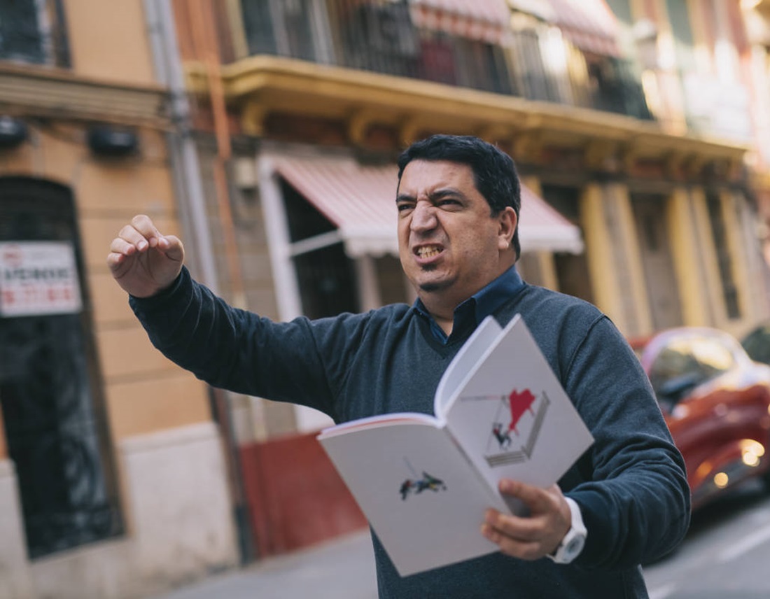 A les 11:30 hores, la companyia de teatre de carrer Visitants interpretarà Pluja de paraules en un recorregut per carrerons i llocs emblemàtics del Cabanyal. En acabar, ja al hall del teatre, l’artista performatiu Vicente Arlandis posarà a prova els límits de la relació del cos amb el seu voltant. Límits naturals, com la gravetat, però també artificials, com ara el sistema judicial. Una narració lingüística, poètica i visual donen forma a El esfuerzo constante de ganarse la vida, una curiosa proposta del creador valencià. Tot seguit, el poeta escènic Jesús Ge pendrà el relleu amb Yo no he dicho eso, una peça de polipoesia, amb bases dadaístes, sorollistes i futuristes, que juga amb la fonètica de les paraules per a crear nous significats. Una revisió de temes candents com ara la política, els drets humans o la moral.
