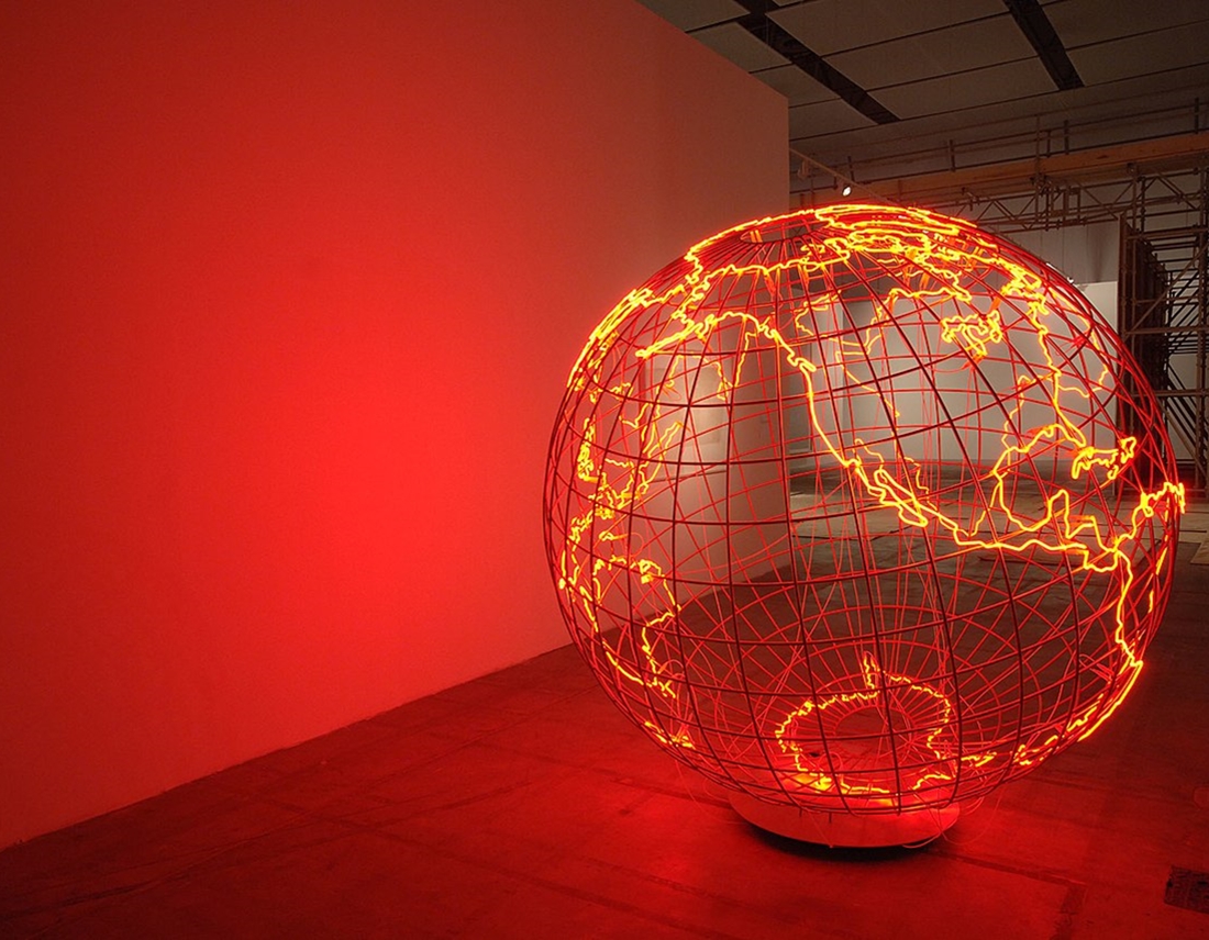 L’exposició presenta, així mateix, una sèrie d’obres clau dedicades als mapes, un tema que Hatoum explora recurrentment en la seua producció des de mitjan anys noranta, a través de materials molt variats com ara bales de vidre, sabó artesanal, acer inoxidable o tubs de neó.